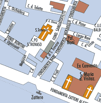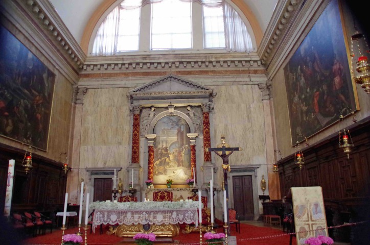 Toutes les scuole n'avaient pas de somptueux bâtiments comme la Scuola San Rocco ou la Scuola San Teodoro. Ils n'avaient parfois qu'une simple chapelle dans une église. C'est ici le cas des squeraroli (Les squeraroli sont les ouvriers des squerri) qui avaient autrefois leur siège à la Chiesa di San Bonaventura (Paroisse San Marcuola, Sestier de Canaregi).