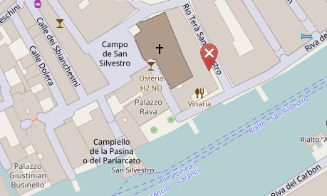 La paroisse de San Silvestro était l'une des 70 paroisses traditionnelles de Venise. Elle échappa aux décrets de suppression du "Regno Italico" du 07/12/1807 et du 12/04/1810.